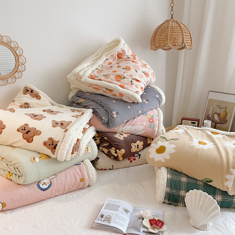 Fresh Peach ~ Lamb Velvet Double-layer Blanket Office Lunch Break Blanket Autumn and Winter Thickening Can Be a Girly Quilt Cover