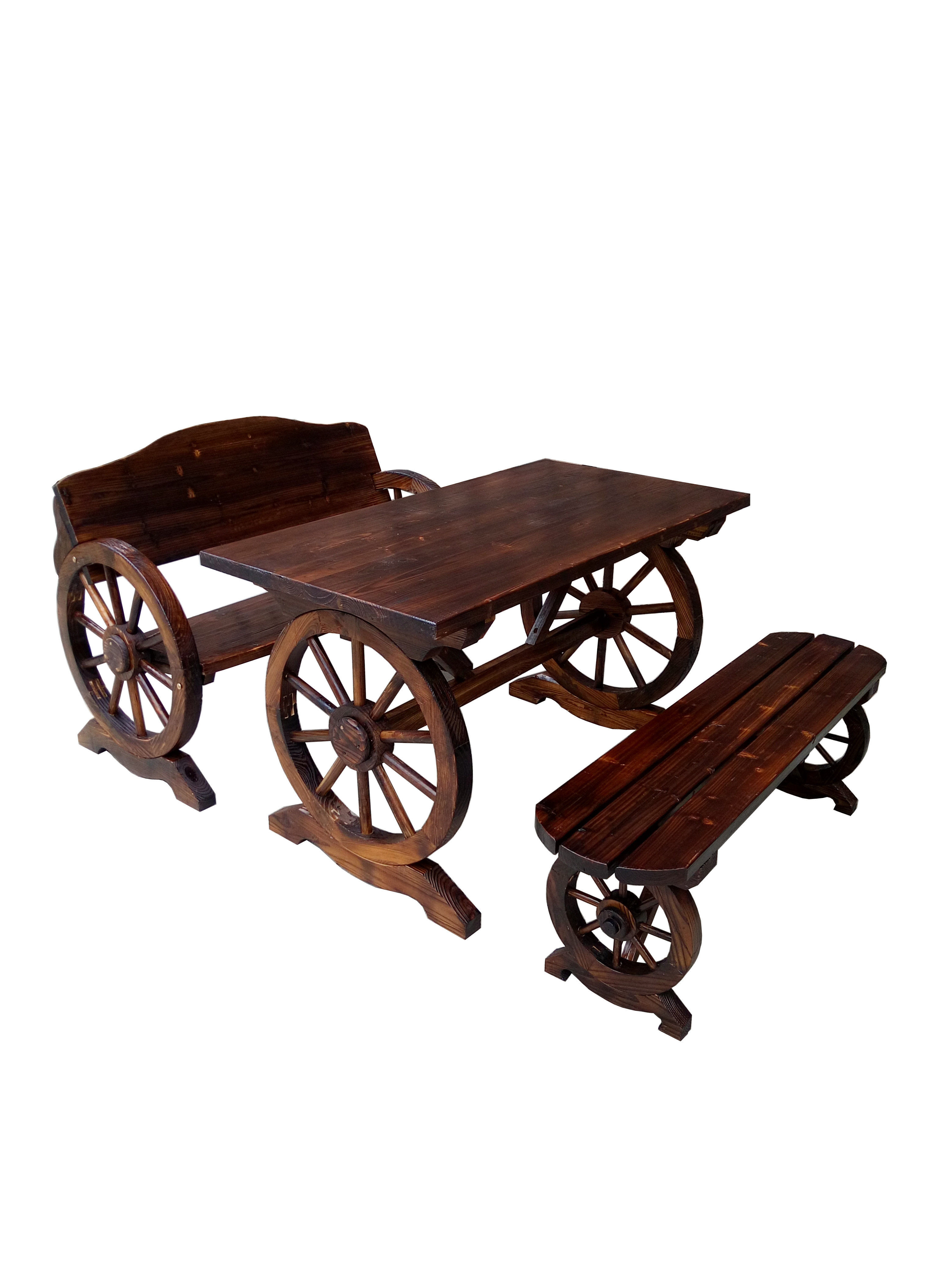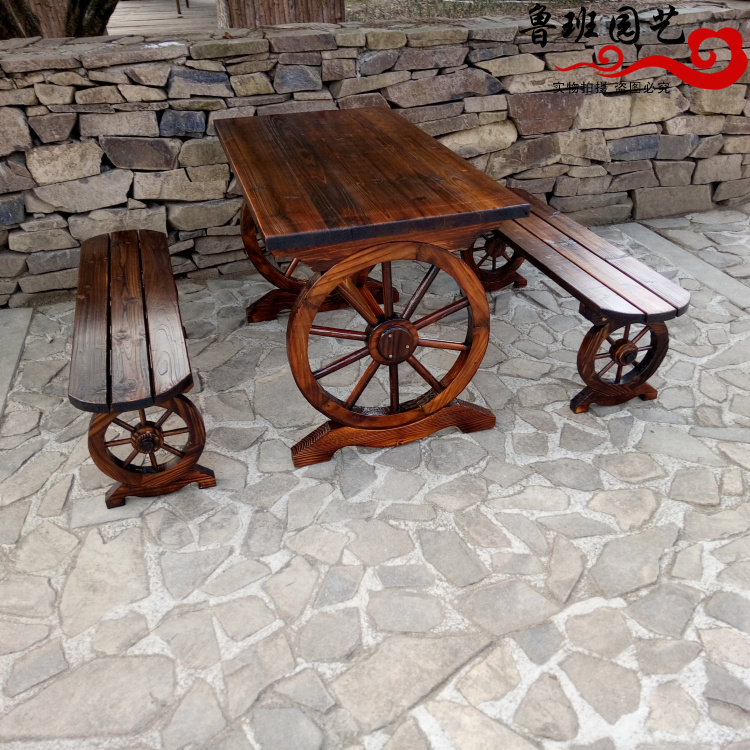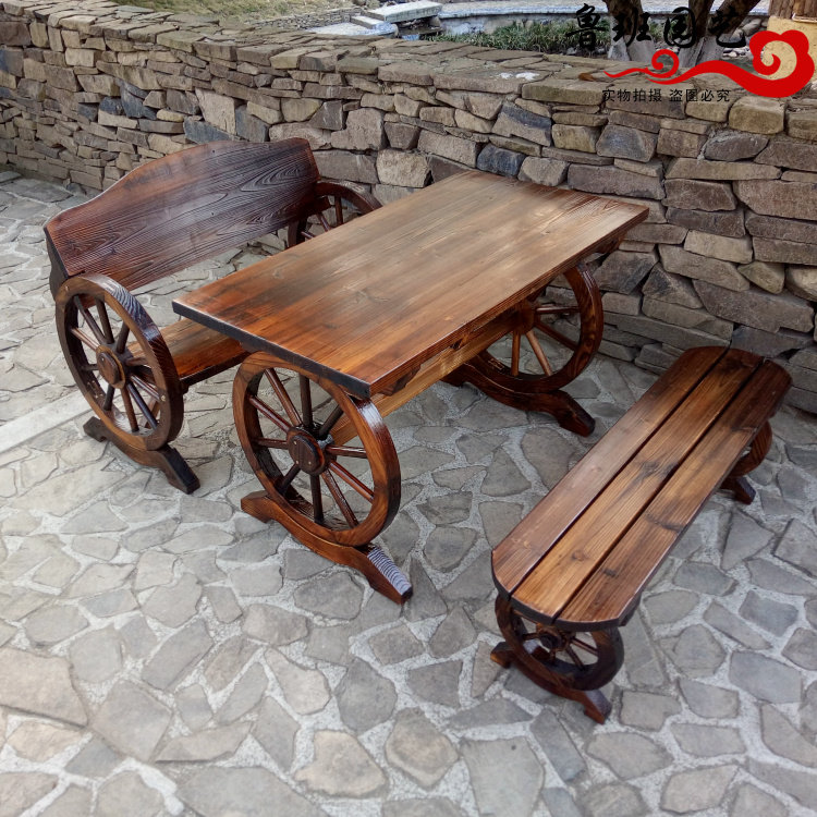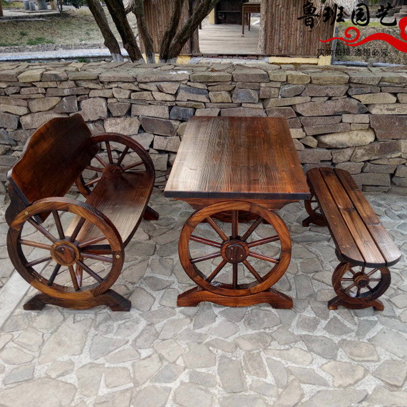 Outdoor Embalming Wood Wheels Table And Chairs Combined Bar Dining Room Balcony Outdoor Patio Solid Wood Carbonated Table And Table Three Sets