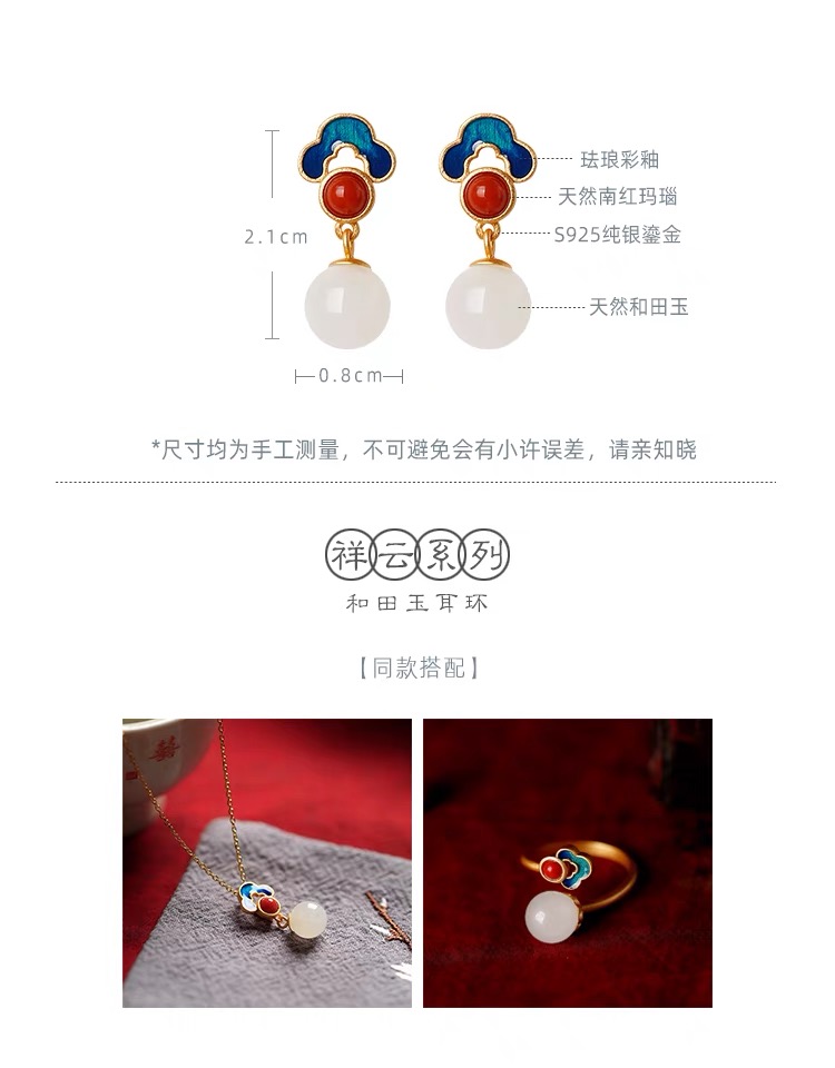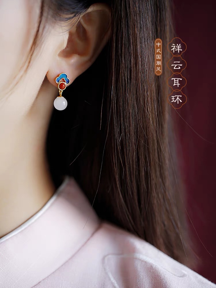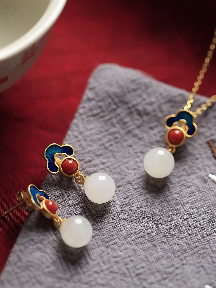 Sterling Silver Inlaid Hetian Jade Retro Wind Jade Earrings Women's Earrings With Cheongsam Accessories Sito Same Style Mother Earrings