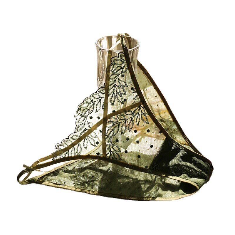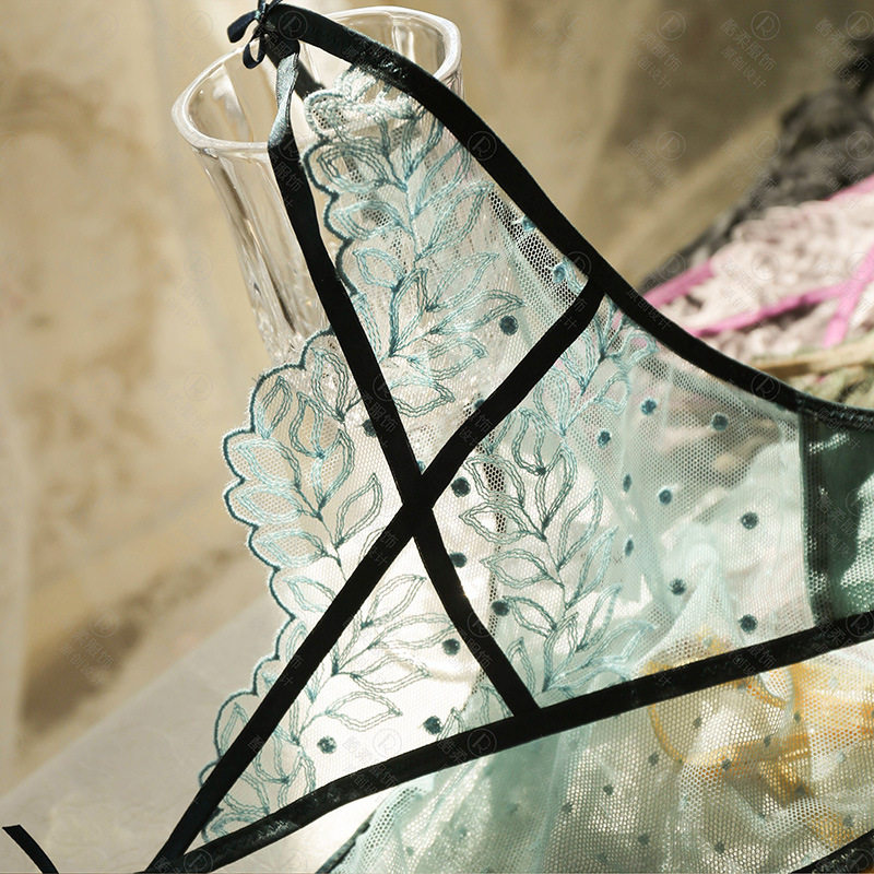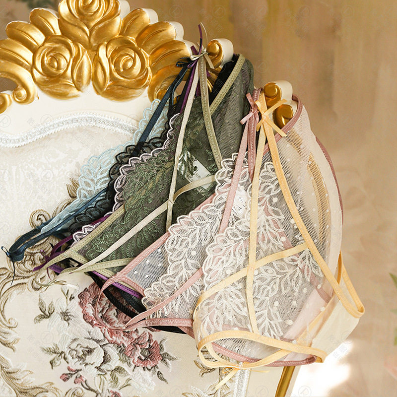 Sexy Cross Embroidery Lace Mesh Underwear Women Breathable Bow Knot Low Waist Perspective Sexy Thin Strap Briefs