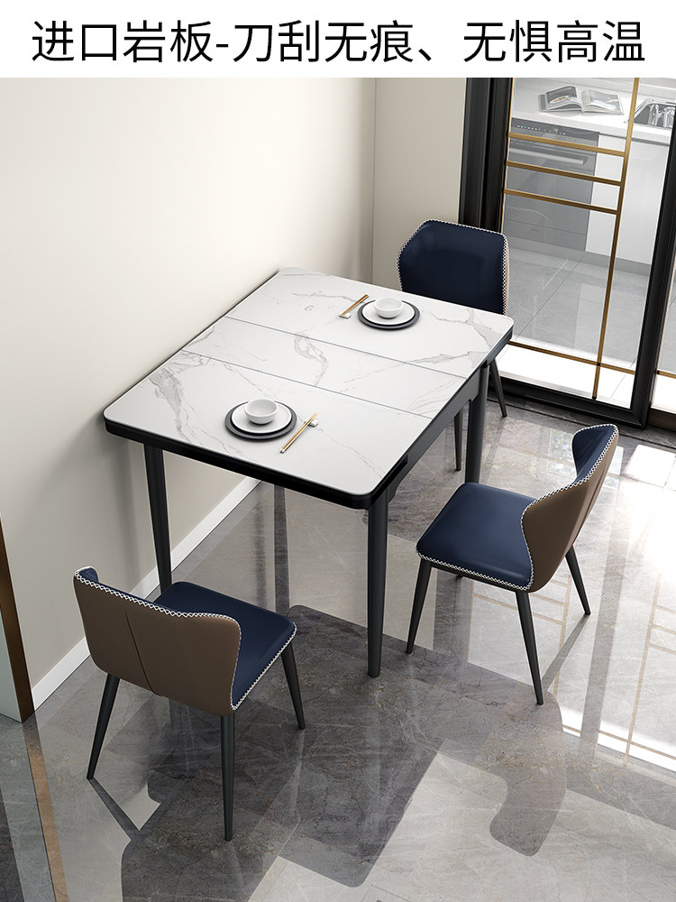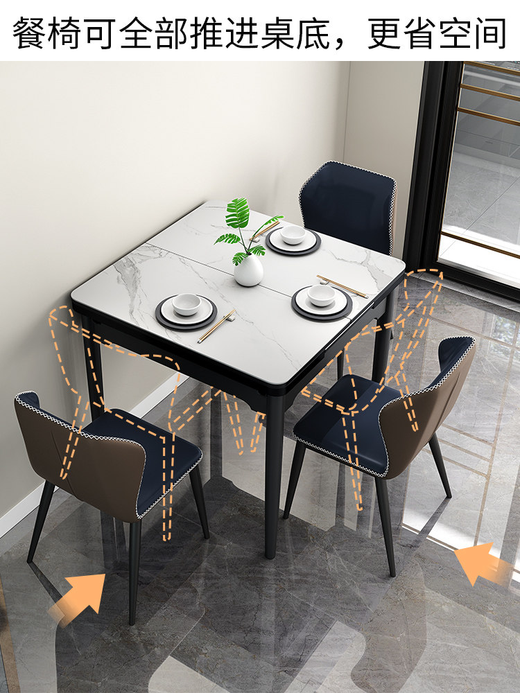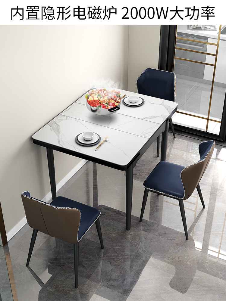 Rock board dining table home small apartment folding retractable solid wood square dining table with induction cooker dining table and chair combination