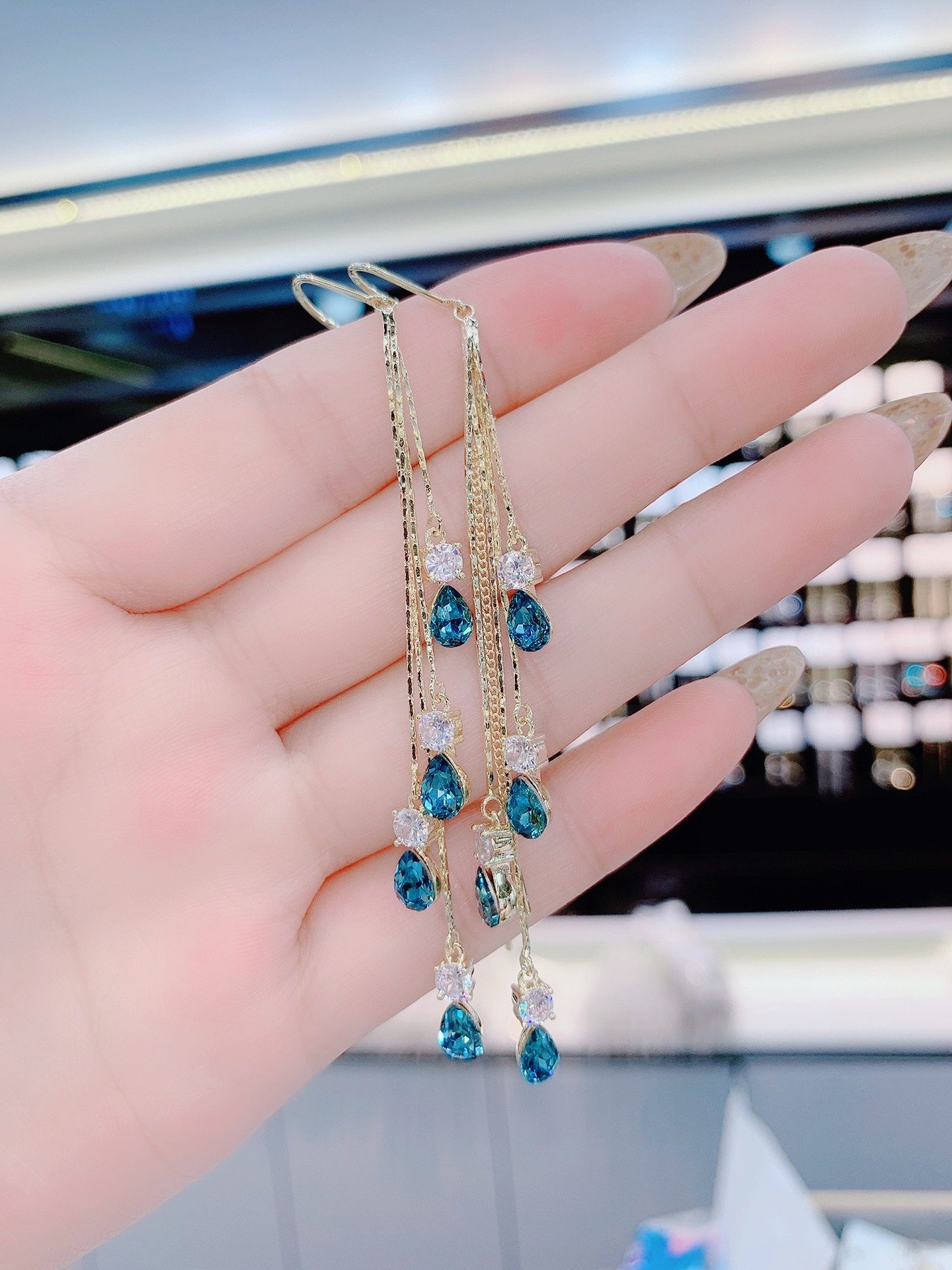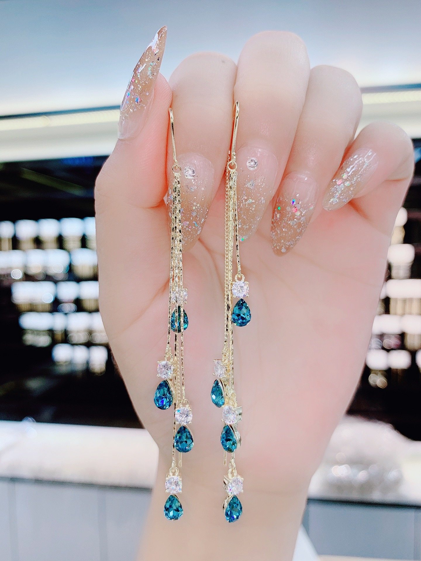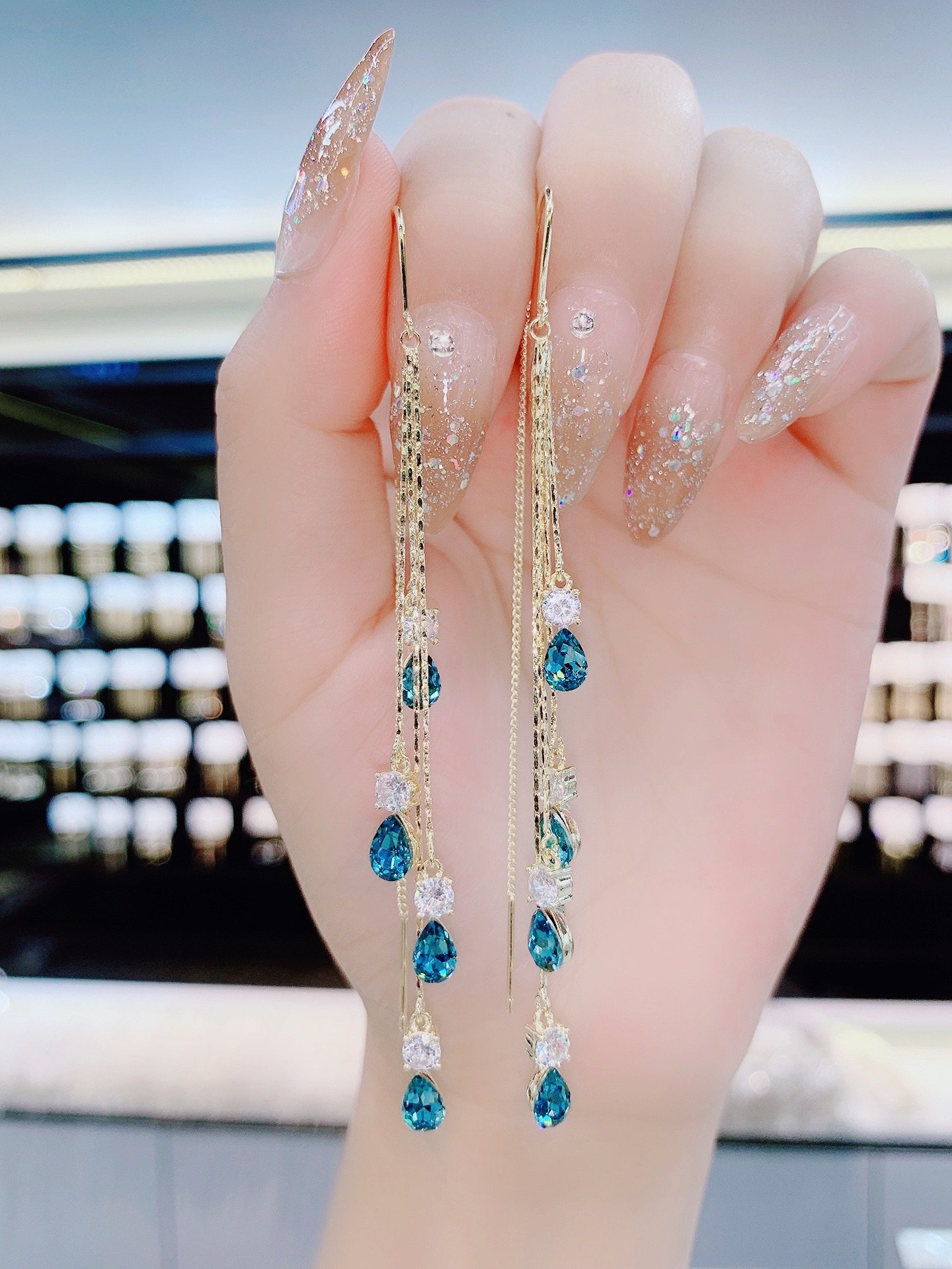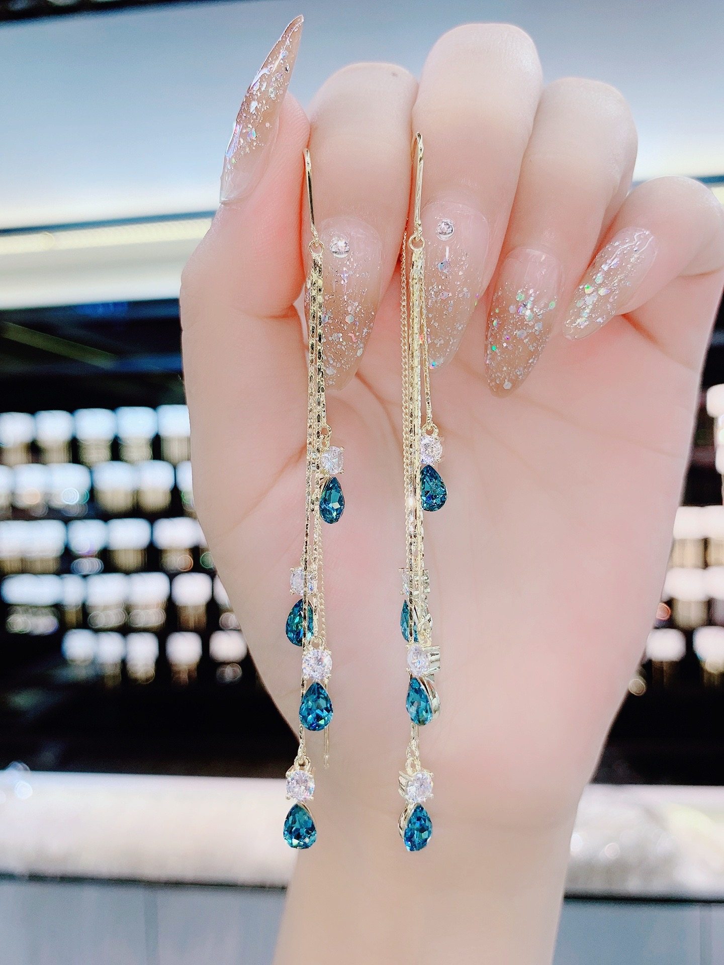 2021 New Tide Blue Demonic drop ear lace anti-throw light luxury high level sensations Exaggerated Face crystal Ears Ornaments