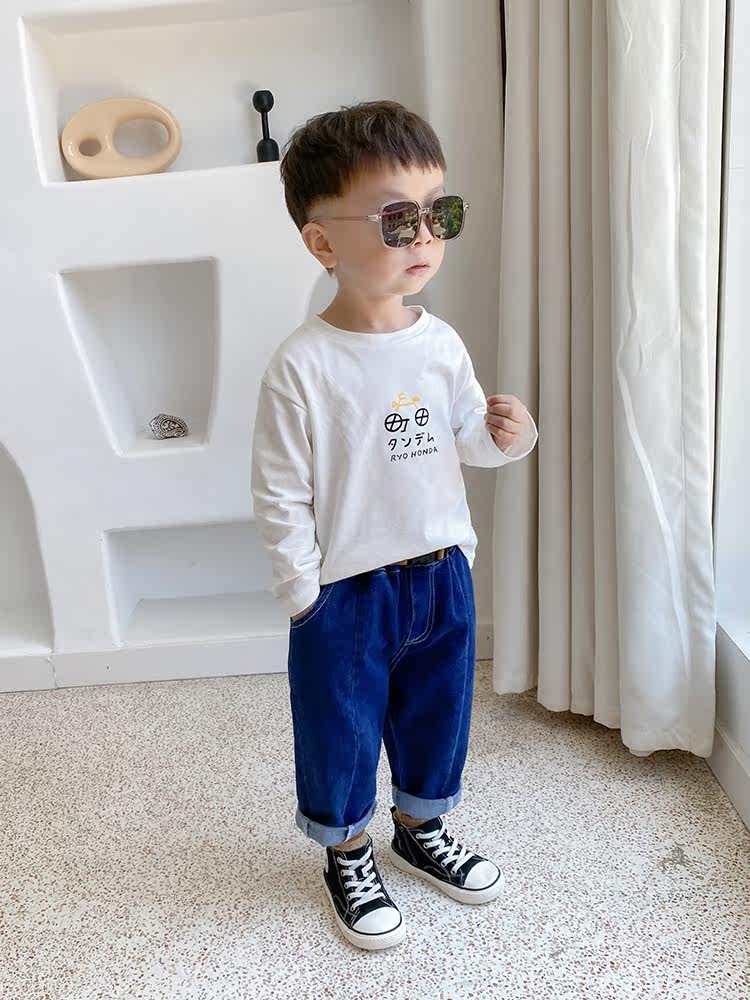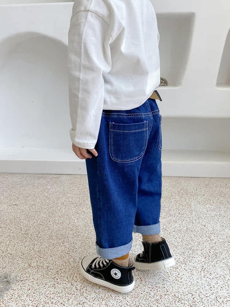 Free belt Boys' jeans spring and autumn children's loose foreign style casual baby pants autumn 2021 new trend