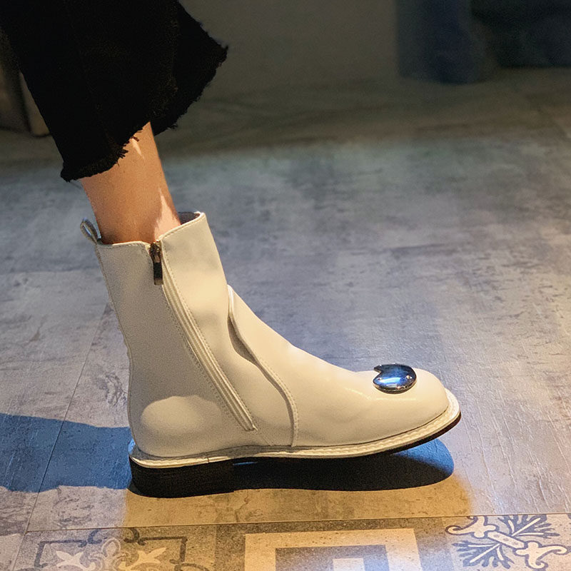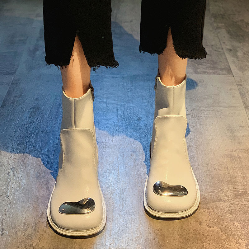 Slim Skinny Boots Woman Summer Spring Autumn Breathable Square Head Coarse Heel Anti Slip Fashion 100 Hitch Inron Wind Retro Short Boots Martin Boots