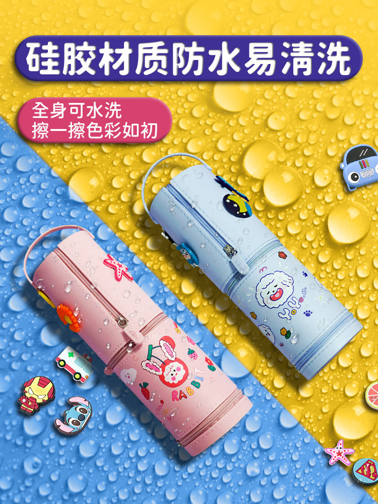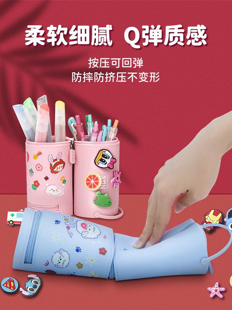 2021 new pop high face value silicone pen bag ins Korean girl elementary school boy's baby multifunction net red pencil case children brief cute teenage girl hearts lead pencil case large capacity pen holder