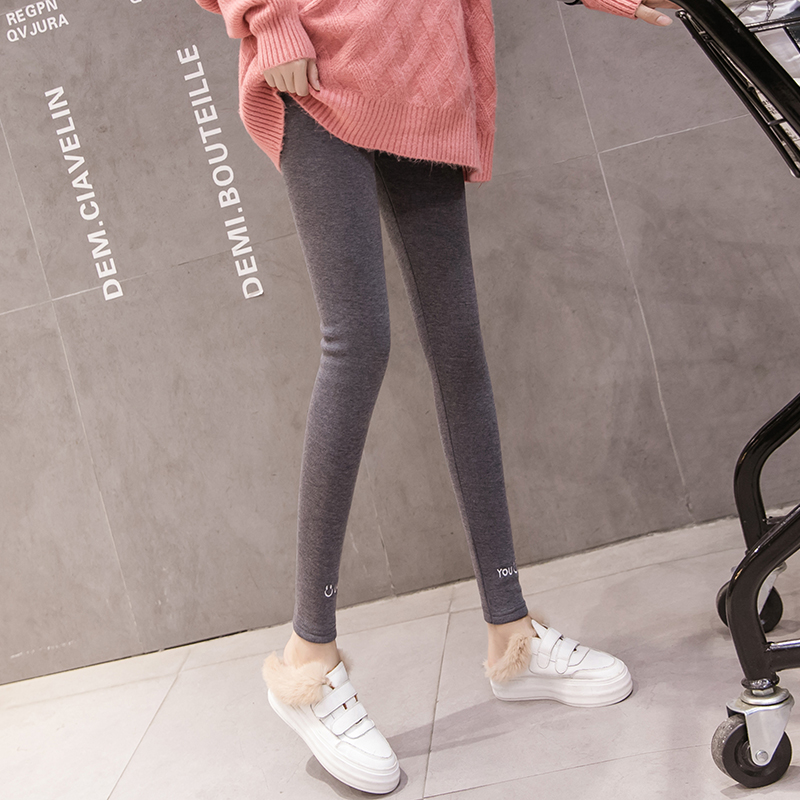 Maternity trousers autumn and winter clothing pure cotton inner pants trousers plus velvet thickening slim fit super elastic casual outer wear pants winter clothing