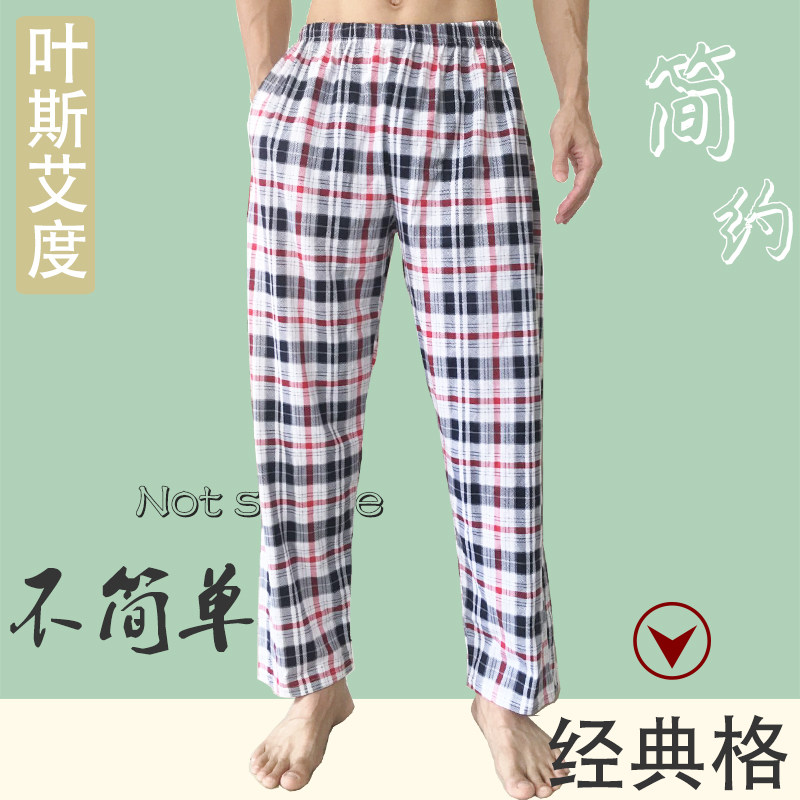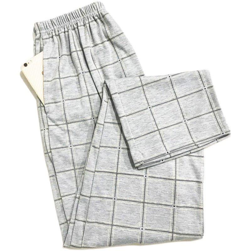Men's Pure Cotton Sleeping Pants Long Pants Spring Autumn Thick checkered Summer All cotton Home Pants Slim loose large size Air conditioning pants