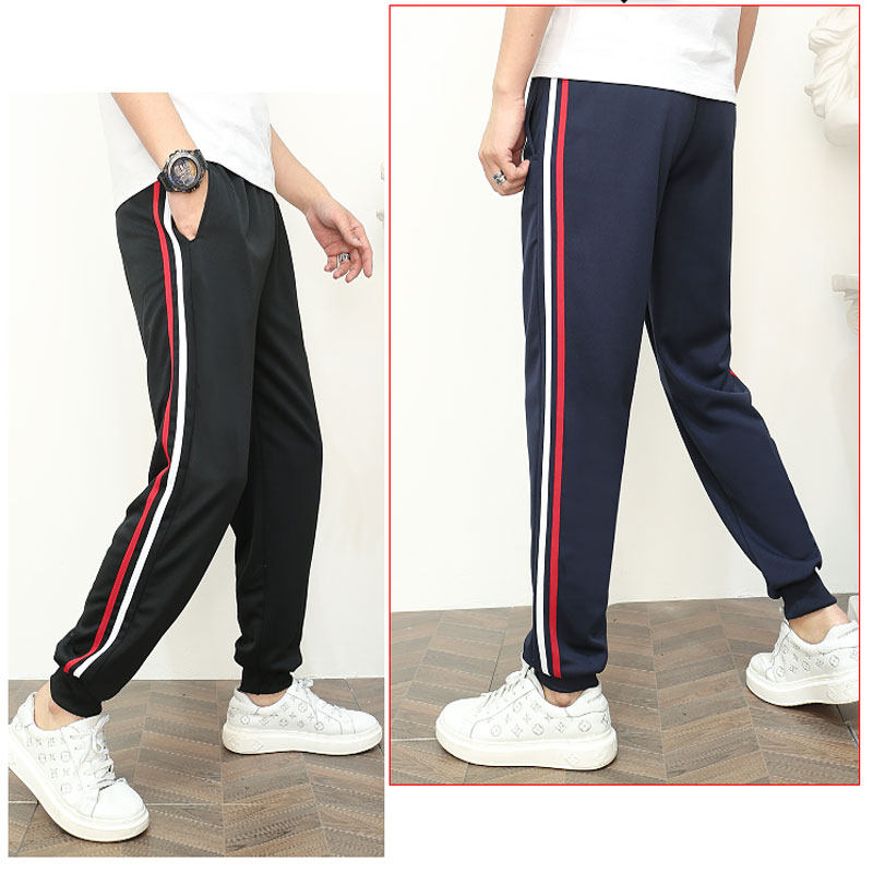 Winter plus velvet thick school pants men's and women's red and white stripes two-bar bundle feet blue and white bar school uniform pants pupils