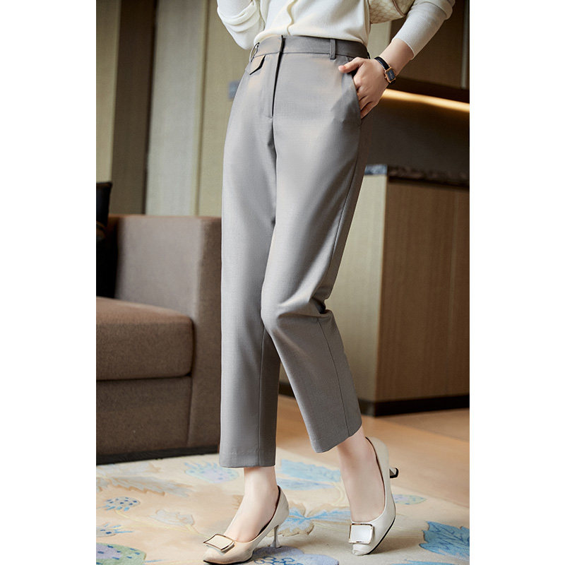 FENPERATE 2022 Spring new grey commuter pituality 100 lap high waist 90% straight drum pants woman