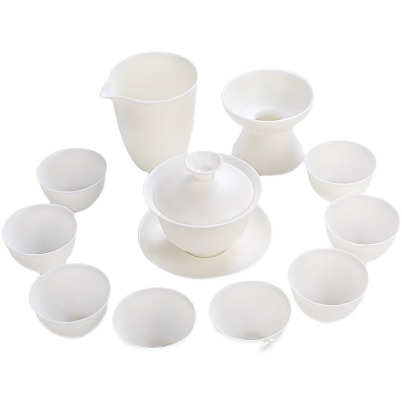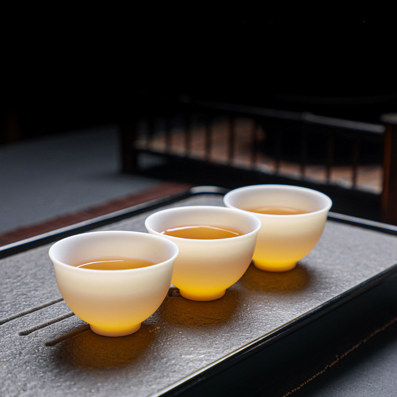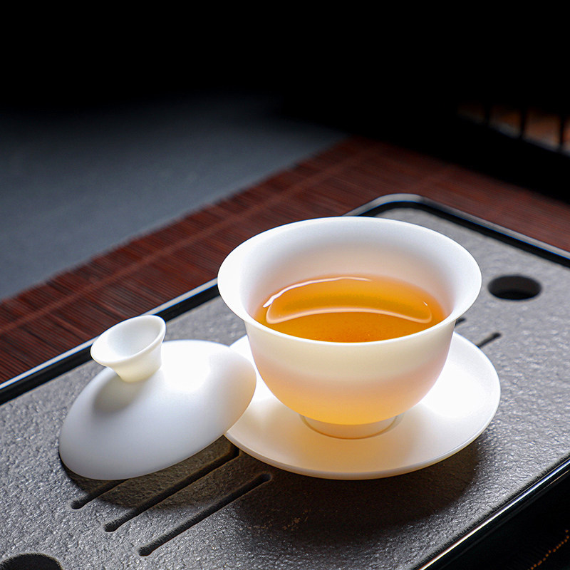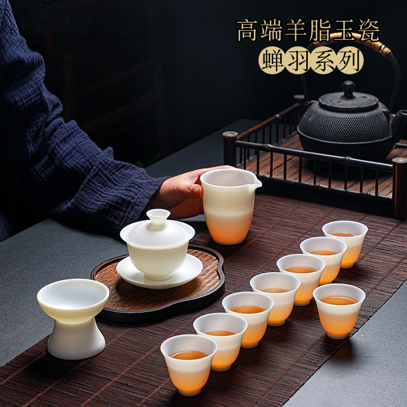 DECLEOR goat fat jade thin tire Qigong tea furniture set tea cup office Living room light extravagant high-end ceramic lid bowl