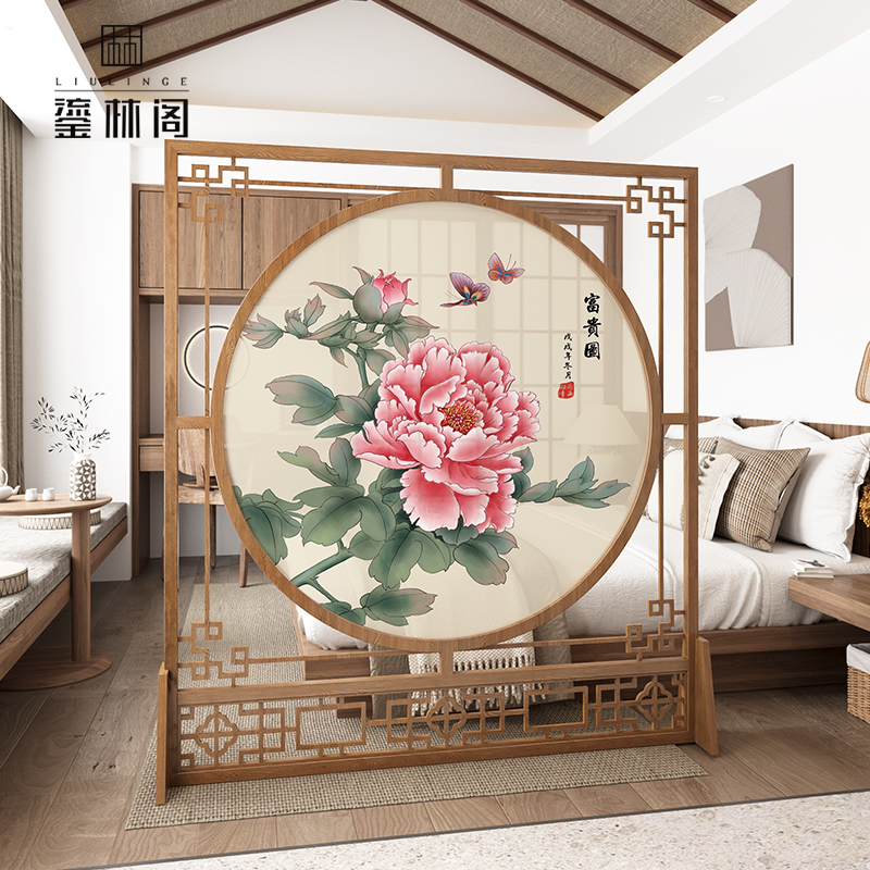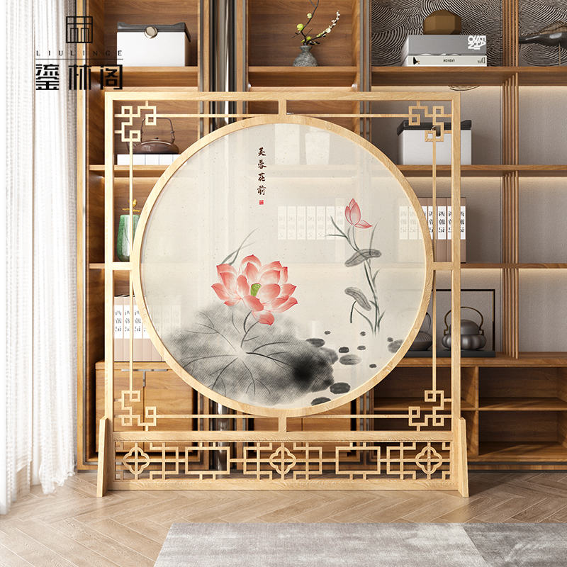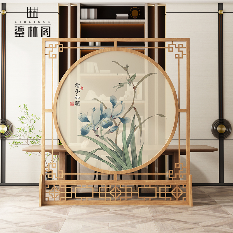 New Chinese-style screen partition Living room Xuanguan entrance door shielded solid wood hollowed-out hotel office Ancient wind seat screen tea room