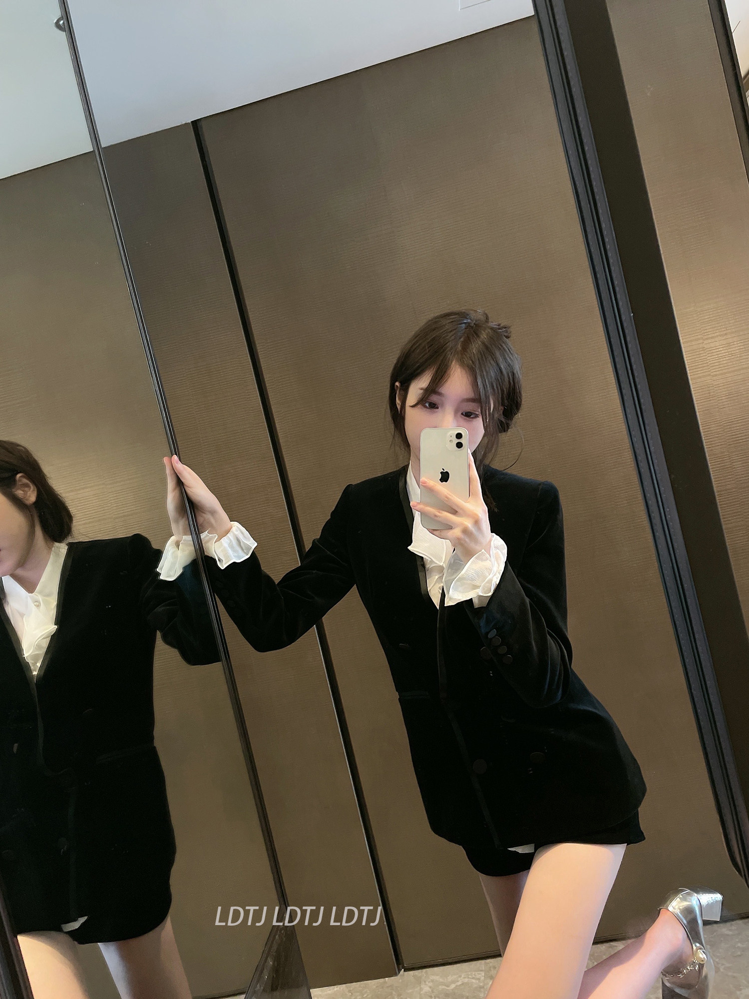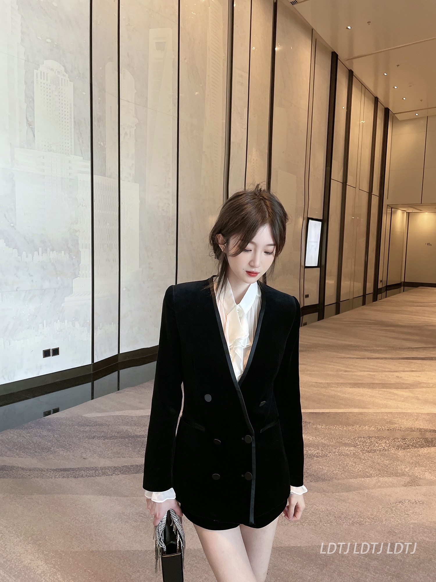 LDTJ Gaoding Western dress female Xun Gui Er miss female swan velvet blazer temperament v-neck shorts suit