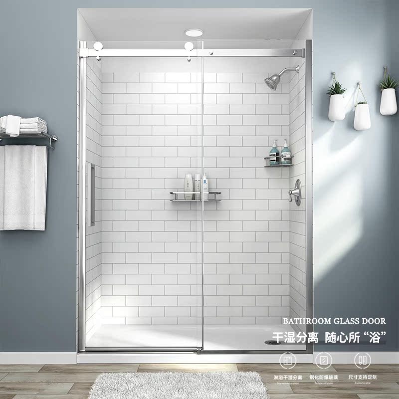 One-type shower room partition without frame custom hanging wheel tempered glass sliding door mesh red dry and wet separation bathroom