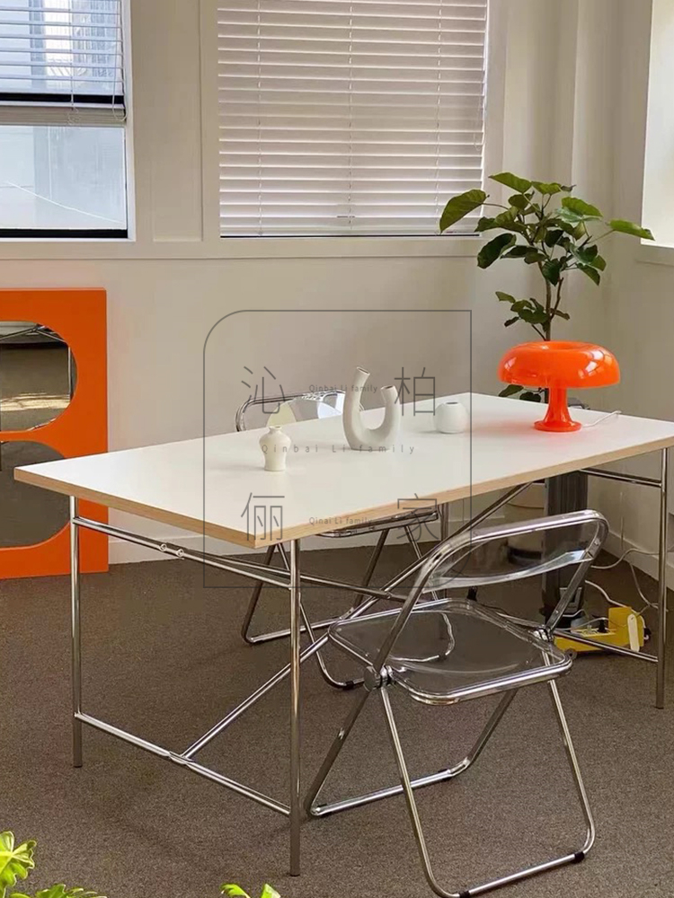 Modern simplicity square meeting table net red solid wooden bauhaus style desk stainless steel students write desk