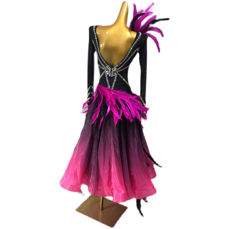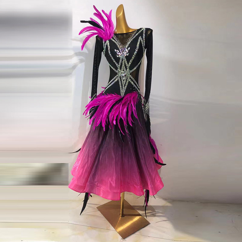 Modern dance skirt gradually color imported pearl yarn feather national standard dance show to the waltz performance suit