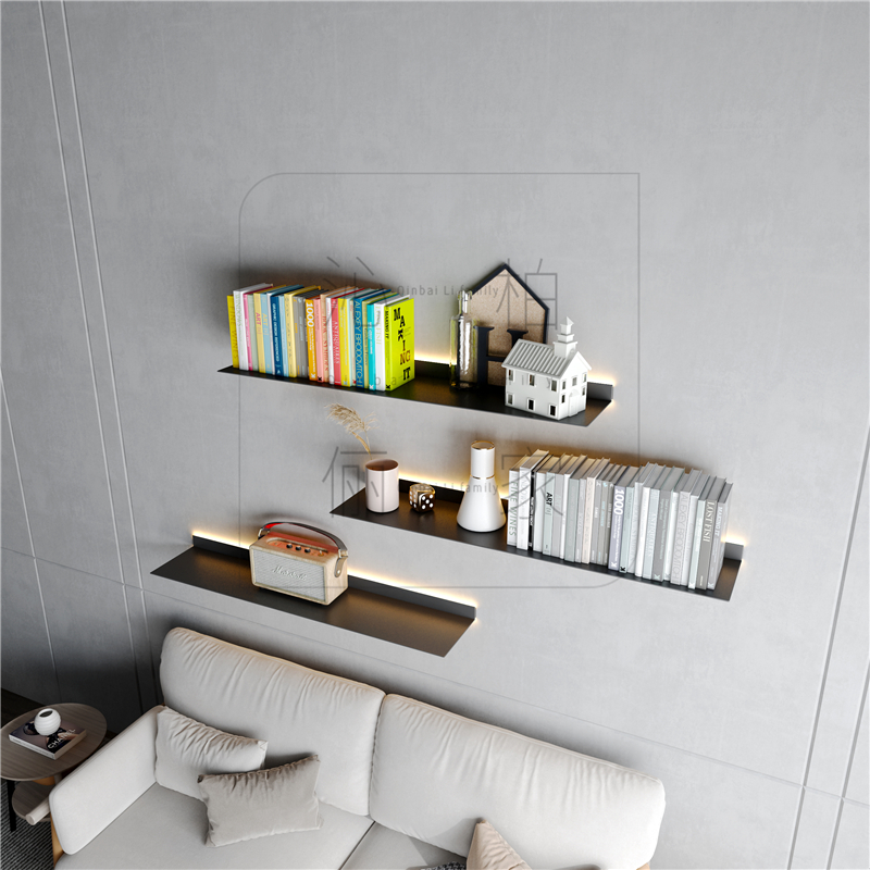 2021 new creative punch-free light-emitting shelf hanging wall partition with light bookshelf living room decoration shelf