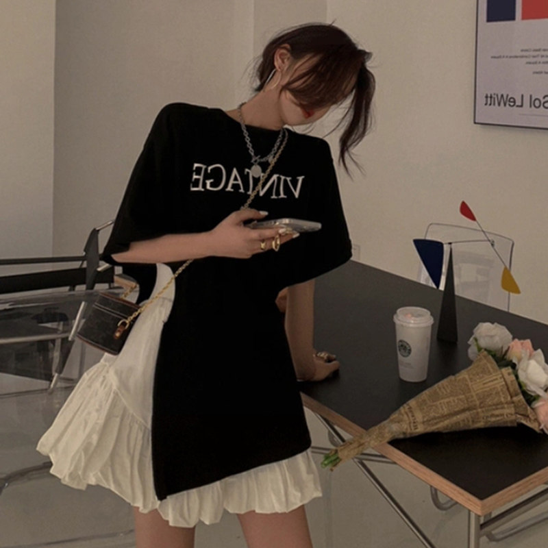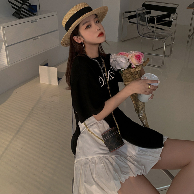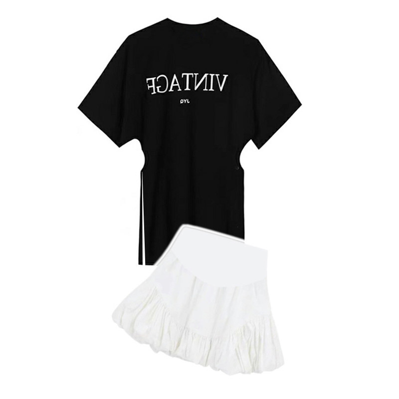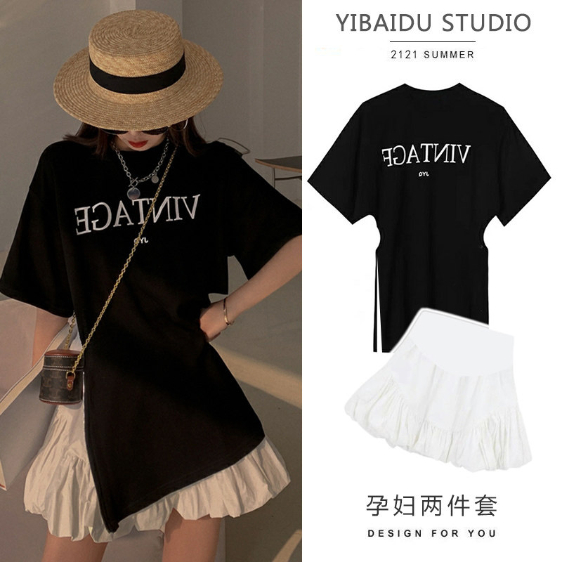 Pregnant women net red fashion suit female summer slit printing short-sleeved T-shirt pregnant women skirt skirt two-piece trendy