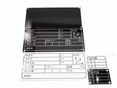 Blank car inspection tool identification card Inspection tool information coordinate reference nameplate sign white background black background aluminum nameplate