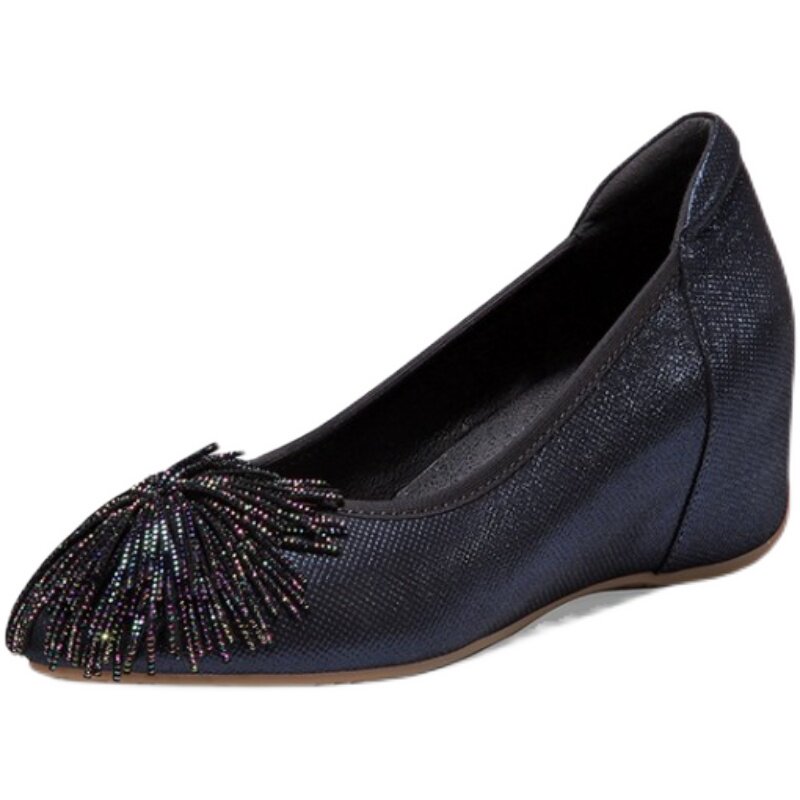 Soft sheepskin inner height-increasing single shoes women's 2021 summer round toe leather wedge heel thick heel comfortable all-match medium heel women's shoes