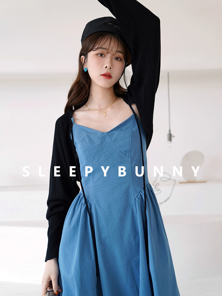 Sleepy Rabbit Thin Knitted Cardigan Women's Early Spring New Temperament Short Lantern Sleeve Black Small Waistcoat Top Jacket
