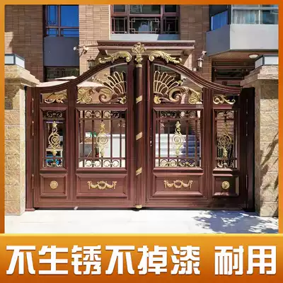 Villa courtyard gate aluminum art gate double door rural self-built house aluminum alloy wall push-pull folding automatic door