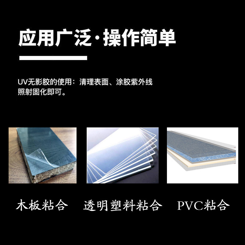 PET bonding melamine board uv shadowless glue high light curing UV traceless crystal transparent adhesive