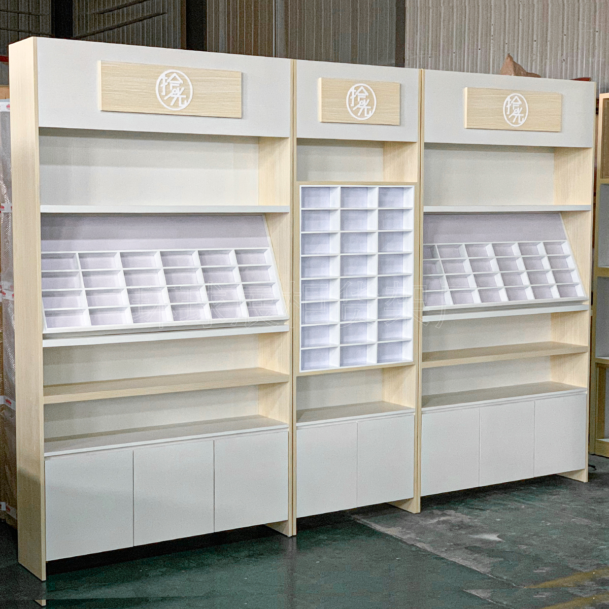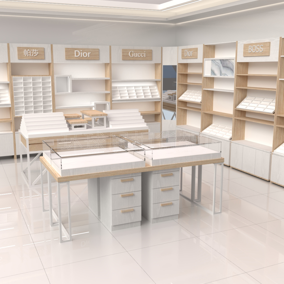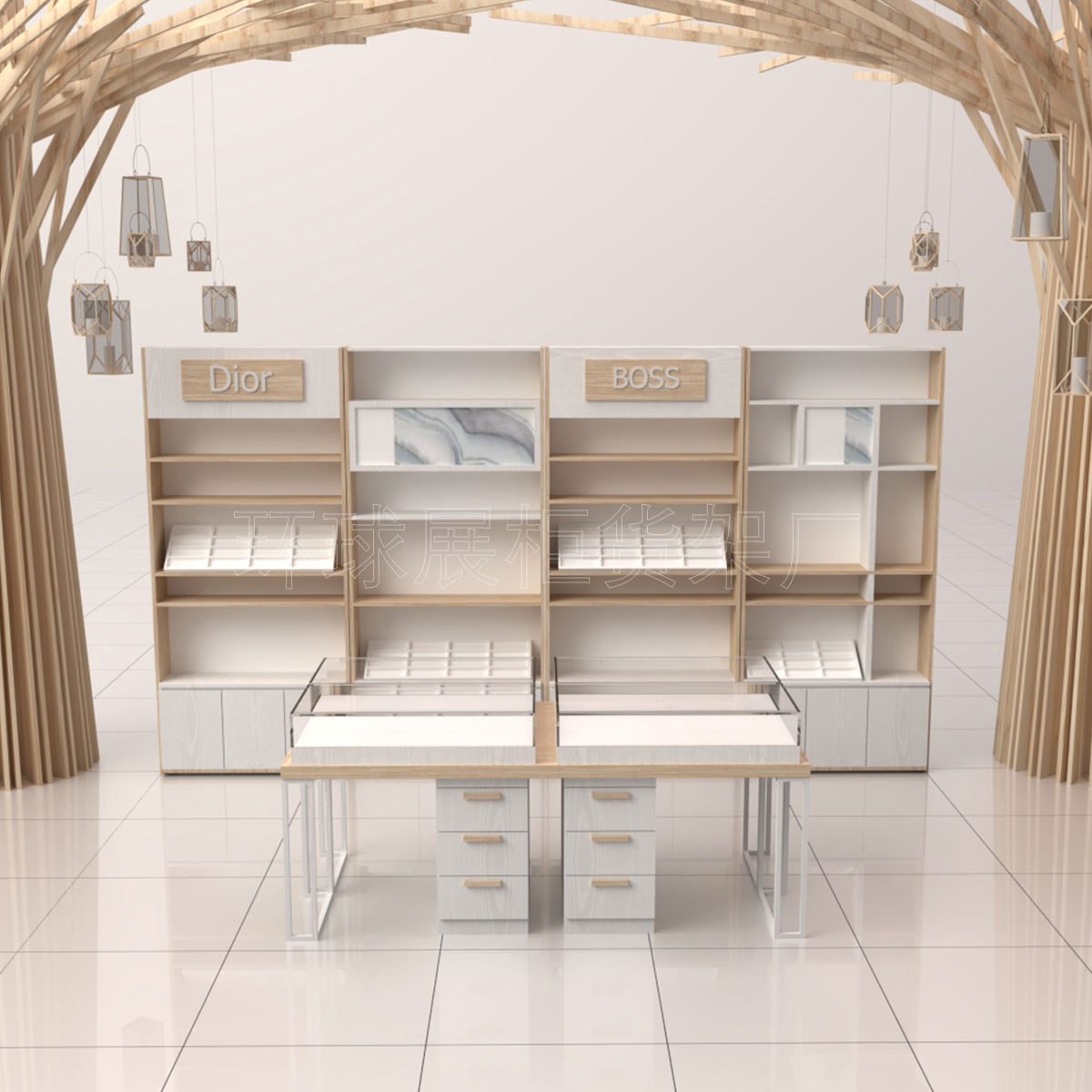 The whole shop set up to be free of solid wood eco-board Fast fashion glasses Show high cabinet shelving counter-free lacquered glass middle island