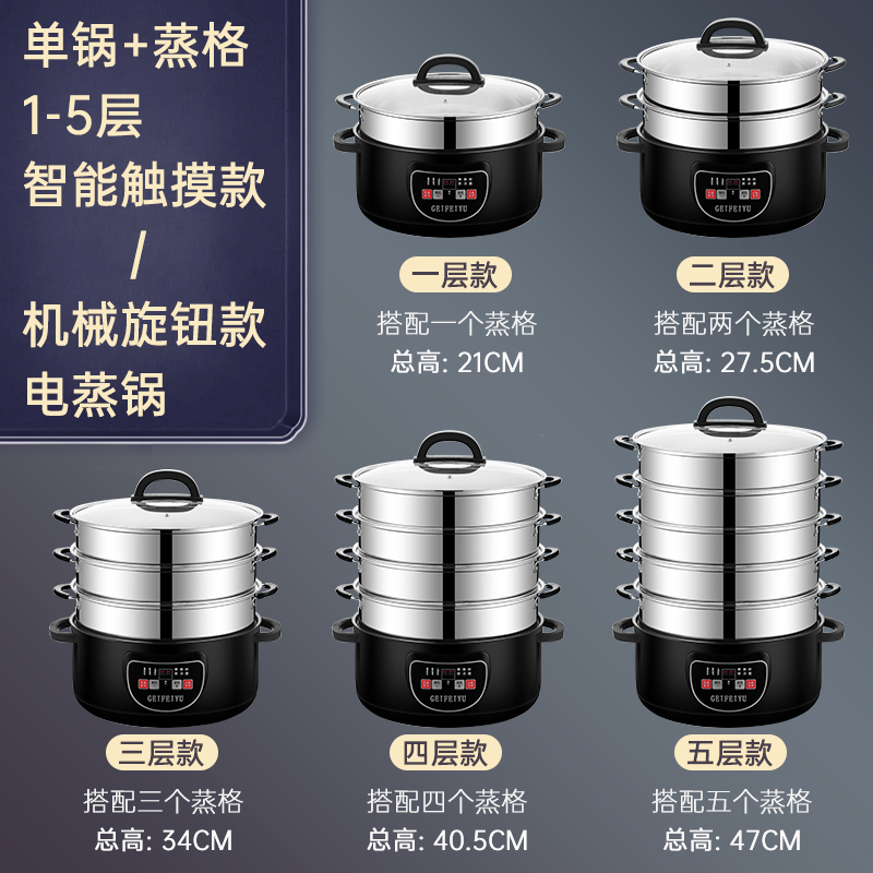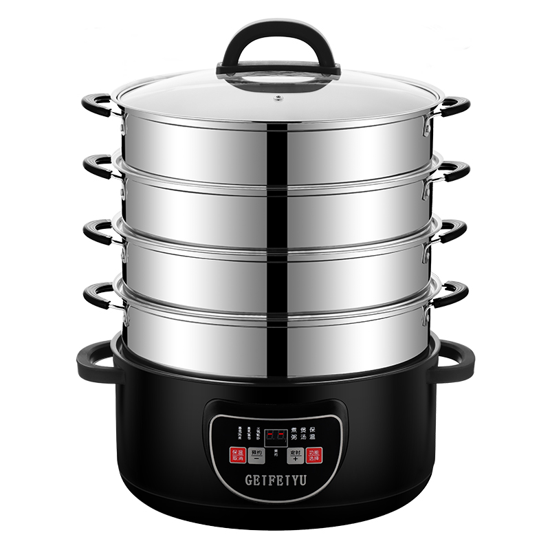 Electric steamer multifunctional household three-layer large capacity steamed steamer multi-layer stainless steel electric steamer small electric hot pot