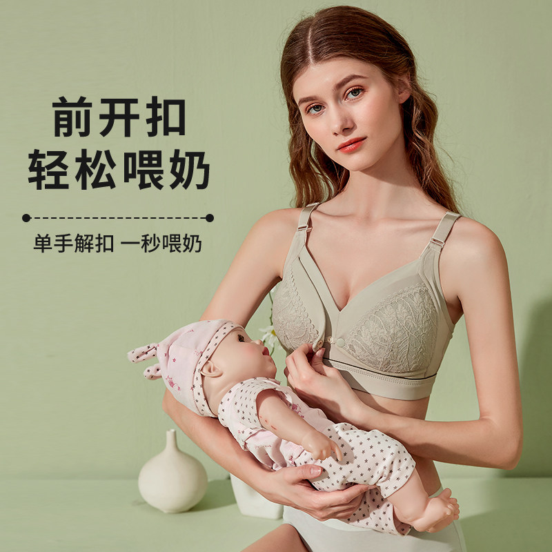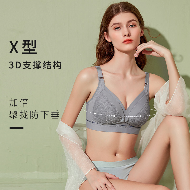 Nursing underwear gathered anti-sagging front button-off maternity bra pregnancy special thin model postpartum feeding female summer