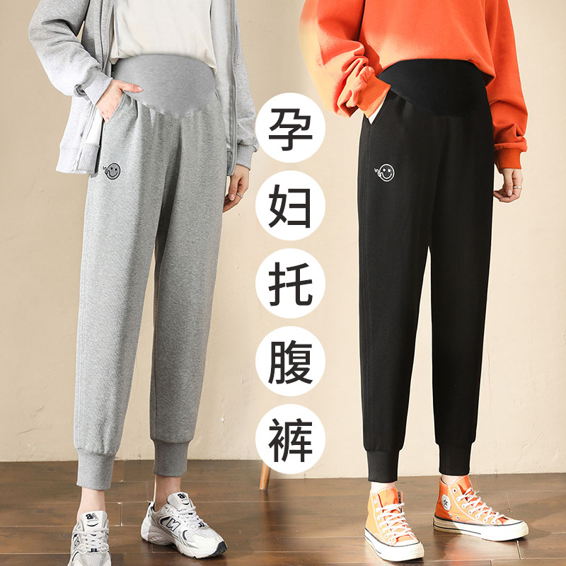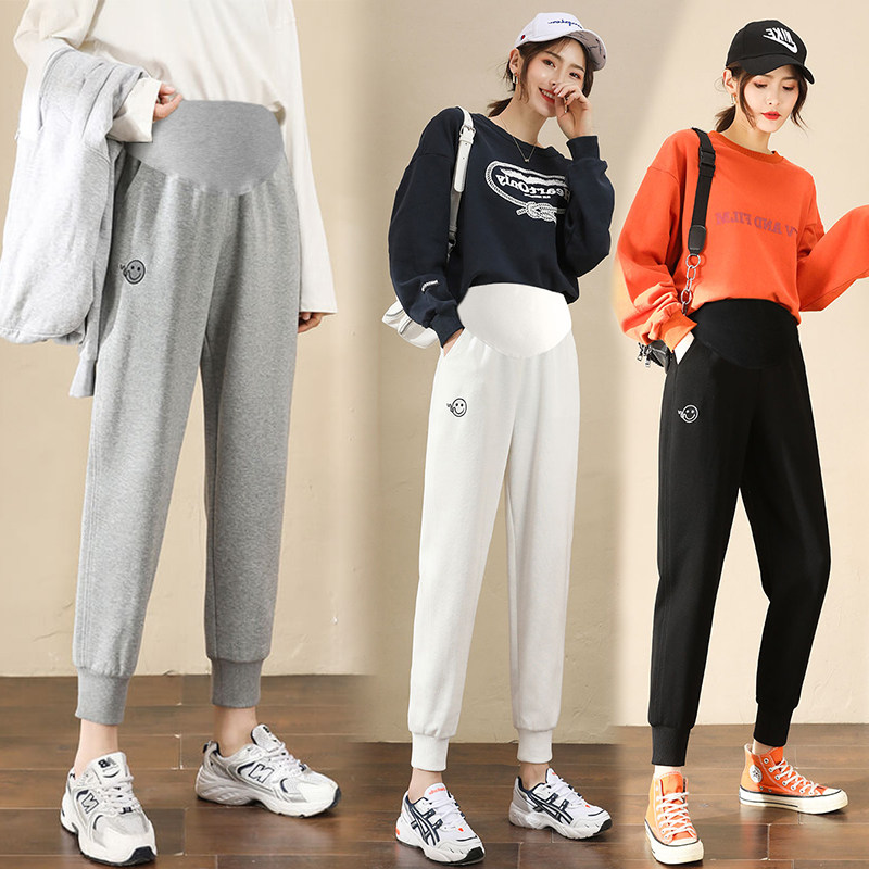 Pregnant Woman Pants Spring Autumn 2021 New smiley face Leisure bunches Pregnancy Sports Pants Tobelly Autumn Clothing Long Pants-Taobao