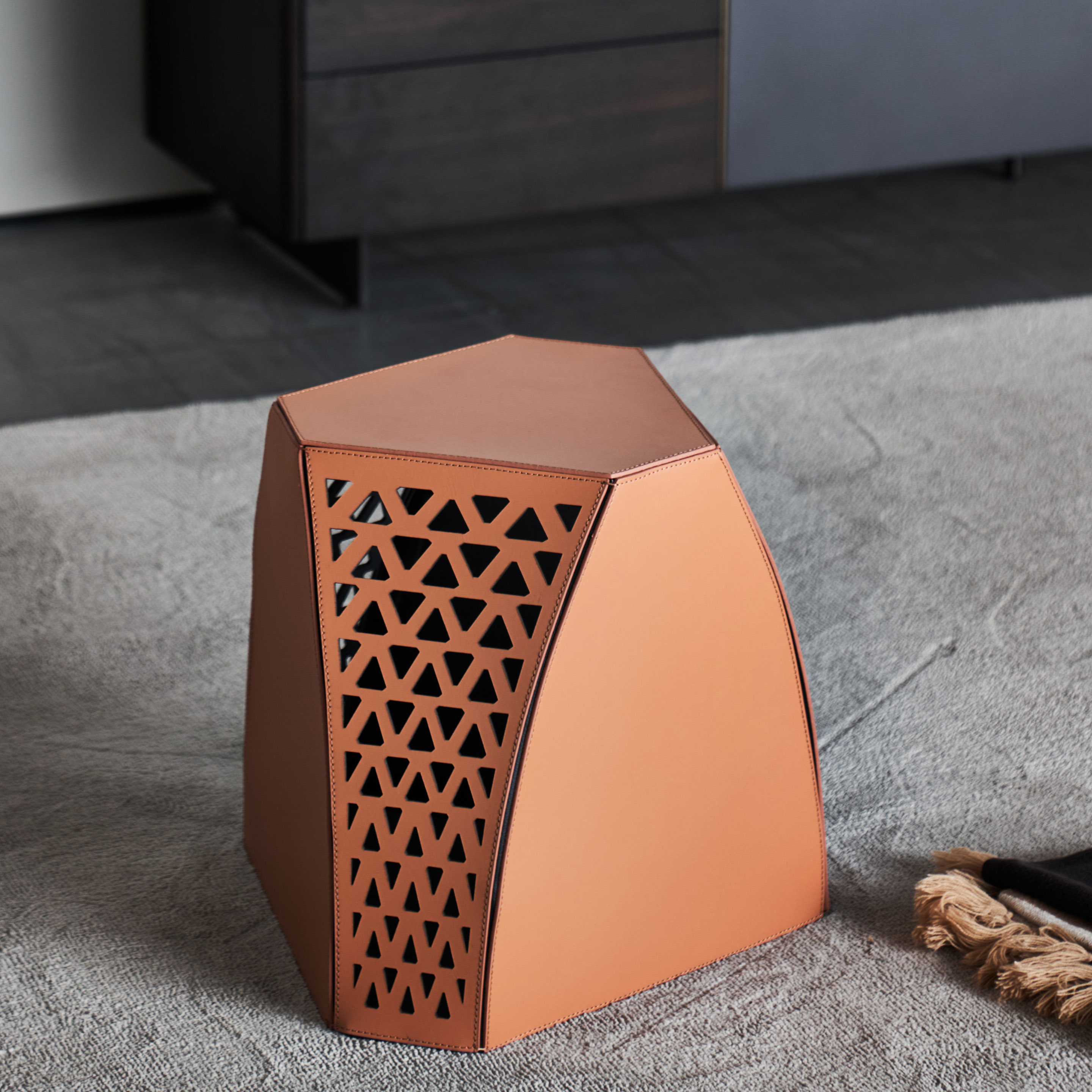 Italian-style saddle leather shoe-changing stool simple hollow low stool European-style art furniture designer home light luxury leather stool