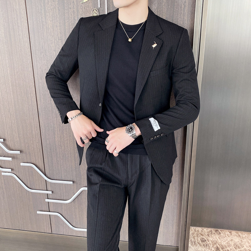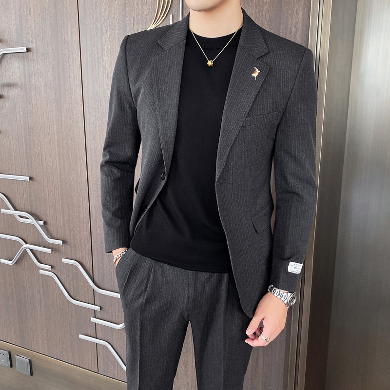 OECANA men's casual suit suit men's Korean version of the slim suit British stripe trend suit two-piece suit