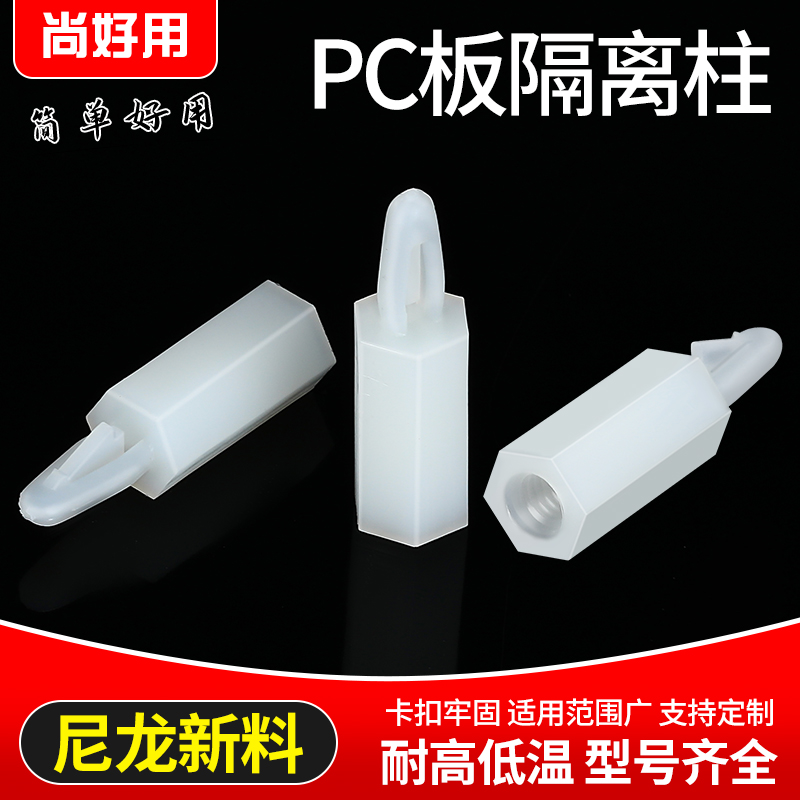 Buttoned hexagonal nylon isolation column aircraft head push-in type plastic spacer support column M3M4 bore hole 4-4 5mm