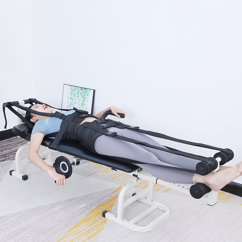 Medical cervical and lumbar traction bed stretcher for auxiliary treatment of lumbar disc herniation.