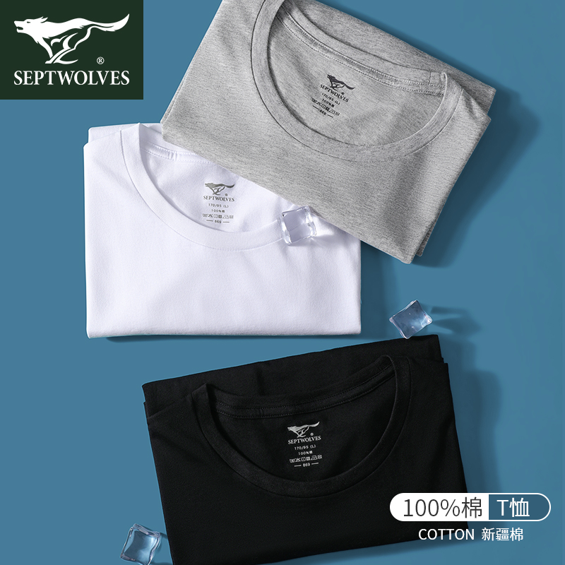 Seven Wolves Men's Pure Cotton Short Sleeve T-shirt Summer Thin Undershirt Sweatshirt All-cotton 2022 New Vest Men