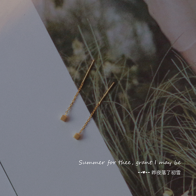 s925 sterling silver ear wire female Korean fashion sweet matte square earring temperament simple and exquisite short earrings earrings