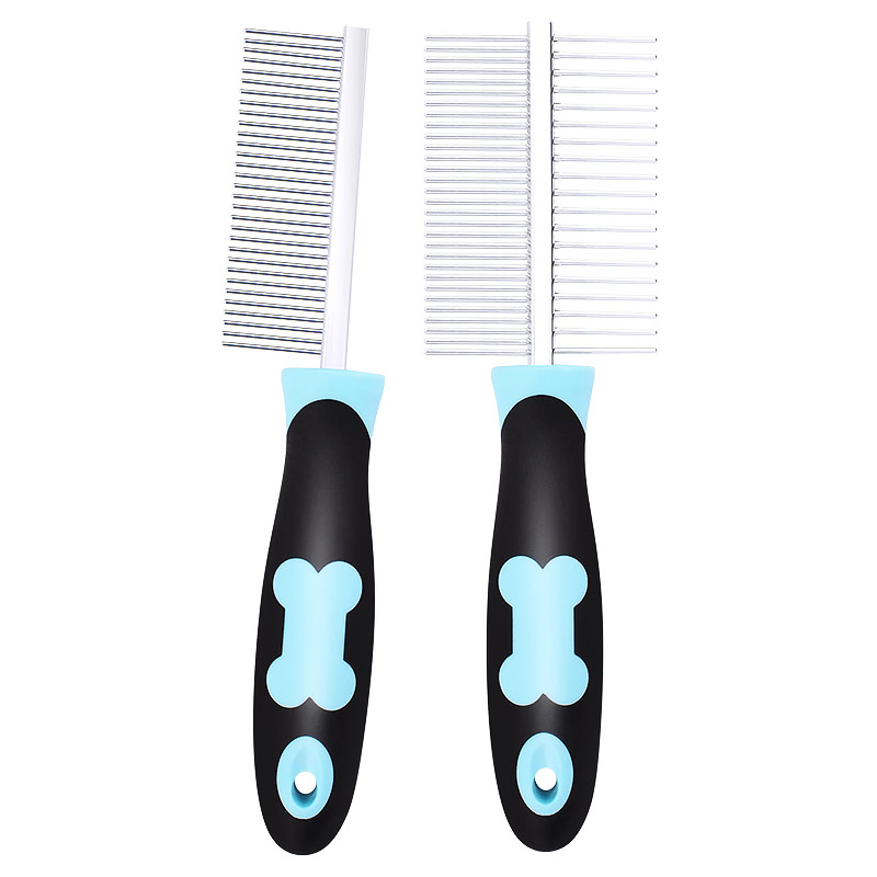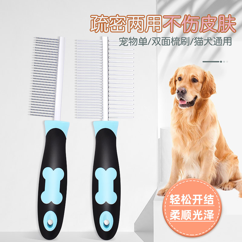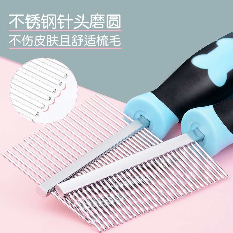 Dog comb Stainless Steel Double Teeth Needle Comb Pet Feline Teddy Gold Wool Straight Row Comb Beauty Combed Hair Drescomb Dog Hair