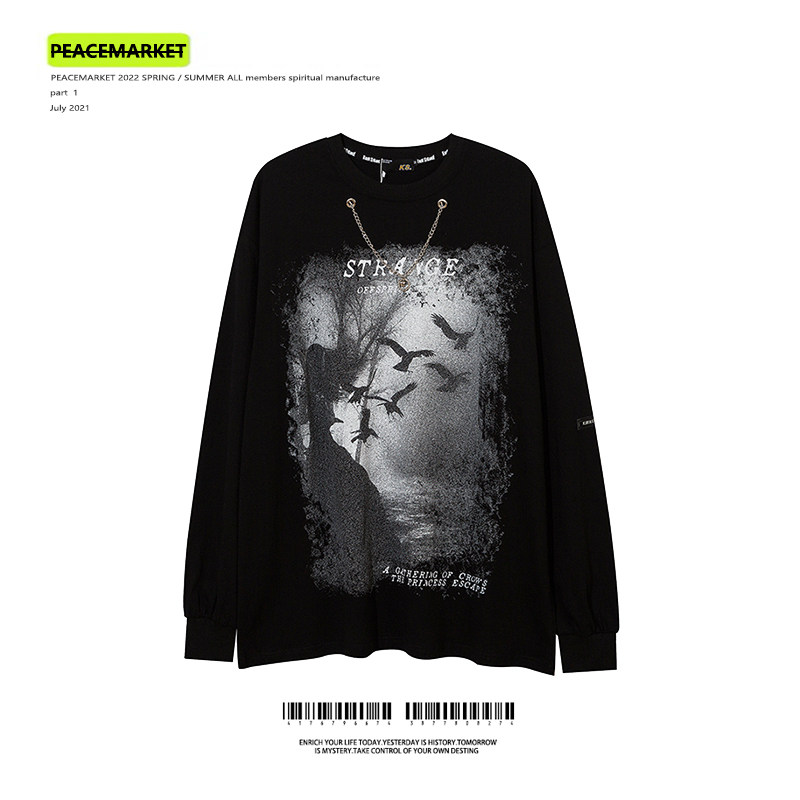 PEACEMARKET Abby style long-sleeved T-shirt men's oversize high street dark mourning beauty tide plus fleece sweater