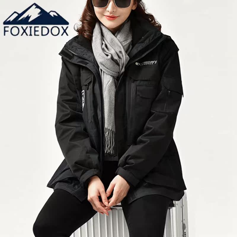 Male and female three-in-one detachable Tide brand autumn and winter waterproof windproof jacket outdoor leisure custom logo
