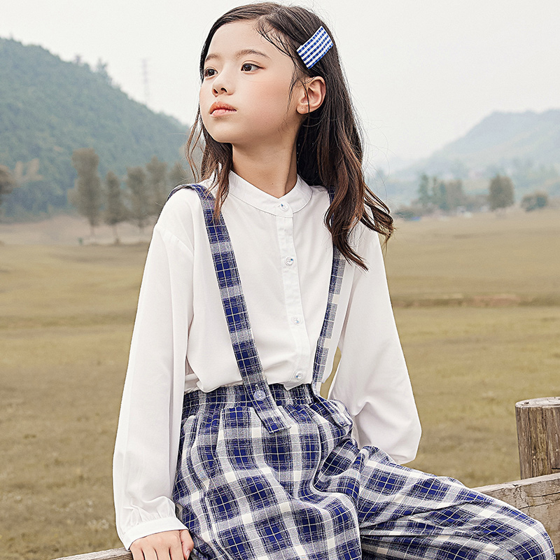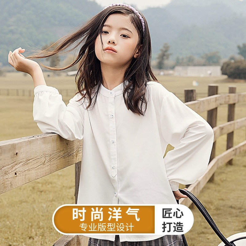 Girl Long Sleeve White Shirt Autumn 2021 Fall New Collar Bubble Sleeves CUHK Child Casual Thin shirt
