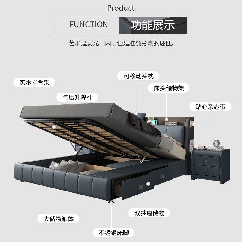 Real leather bed (with drawer) genuine leather bed head cabinet * 1 dermis bed head cabinet * 2 dermis bed 918 classic soft and soft dual-use mattress genuine leather bed and soft and soft dual-use mattress bed head cabinet * 1 dermis bed