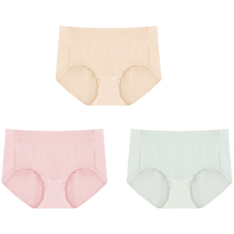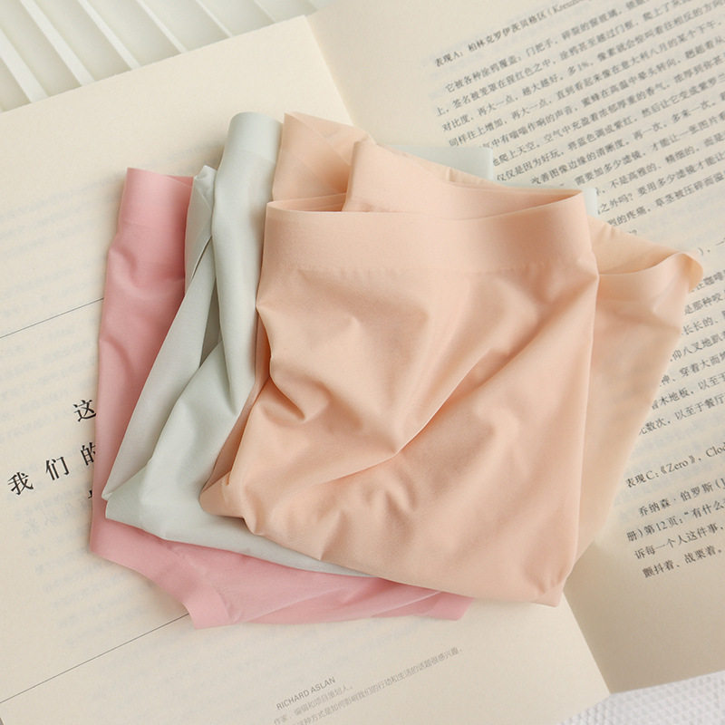 Seamless underwear women's summer nude breathable antibacterial ice silk breathable quick-drying briefs silk crotch three-pack shorts