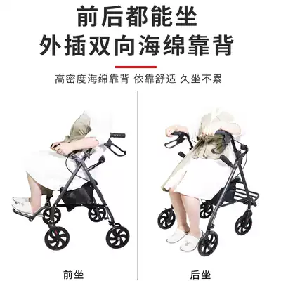 Walker for the elderly trolley four-wheeled vehicle for the elderly Lightweight folding pushable four-legged walking stick