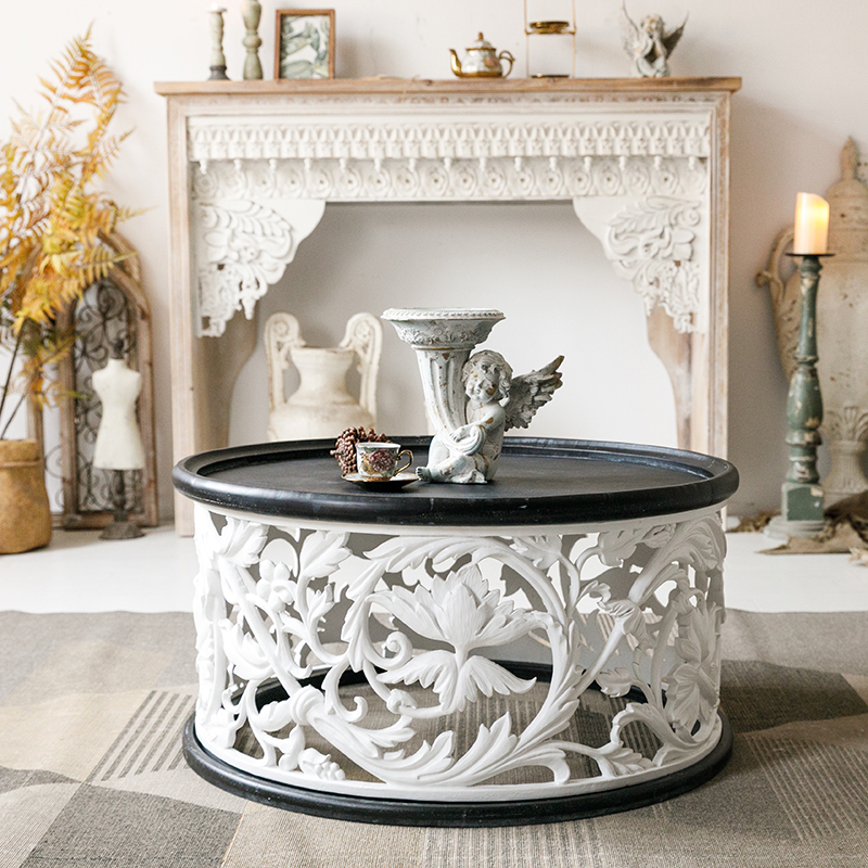 American retro entry solid wood homestay creative coffee table round carved hollow art living room sofa side table decoration