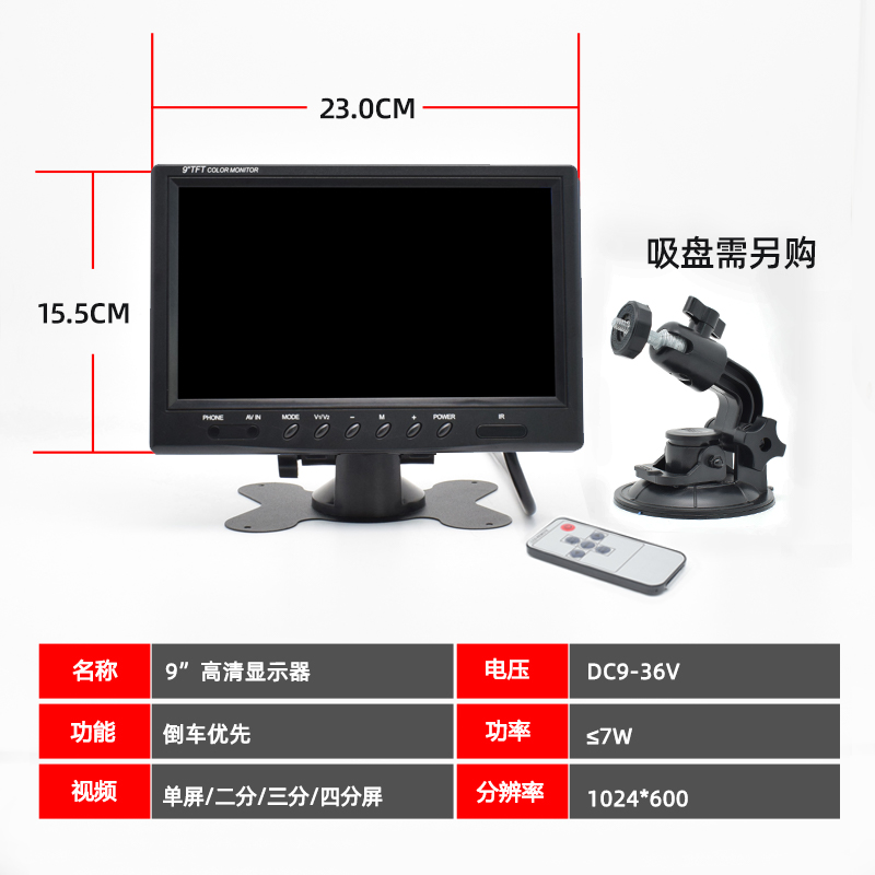 Truck reversing image 24V HD night vision harvester four-way monitoring semi-trailer visual car display 9 inches