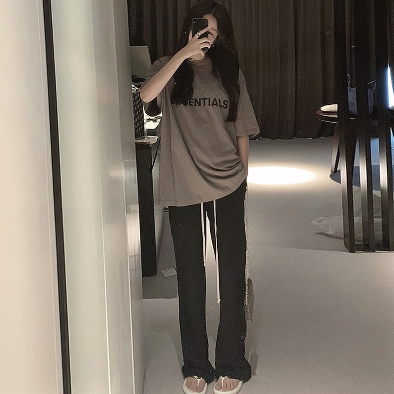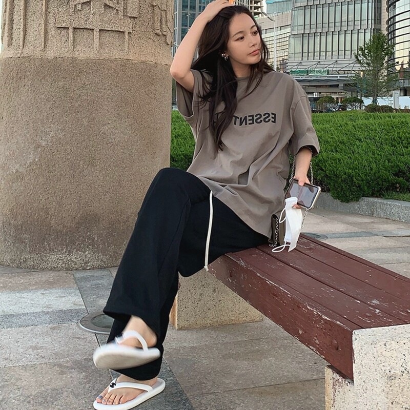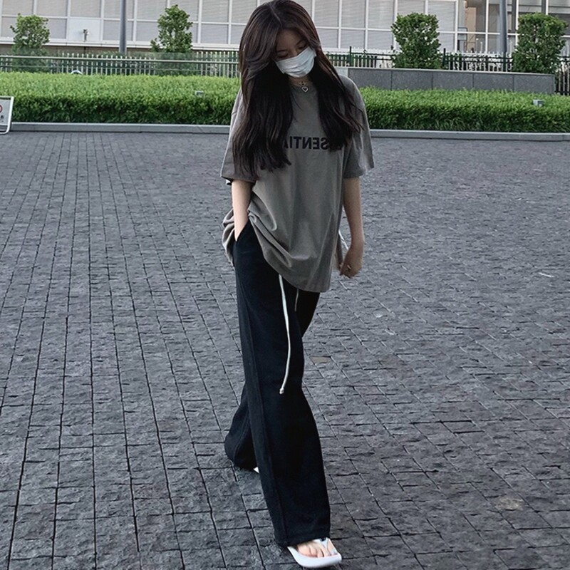 Gray T-shirt (light cooked, Hong Kong flavor, occupation, sweet, fresh, college style, complete set, pure desire hot girl summer suit, female summer, royal sister fried street, casual fashion) black wide pants (salt series)