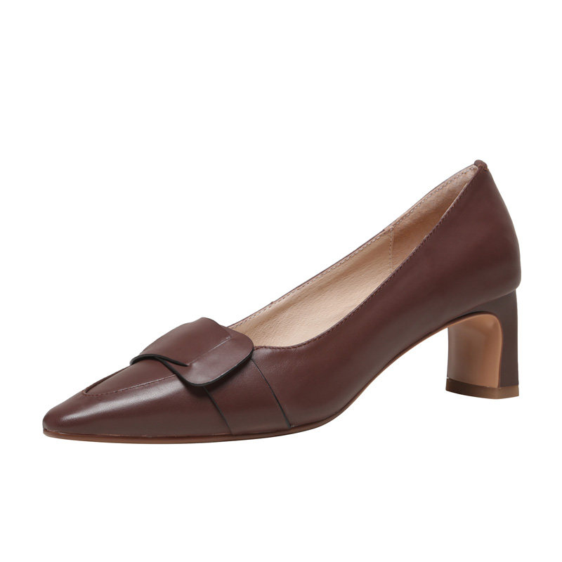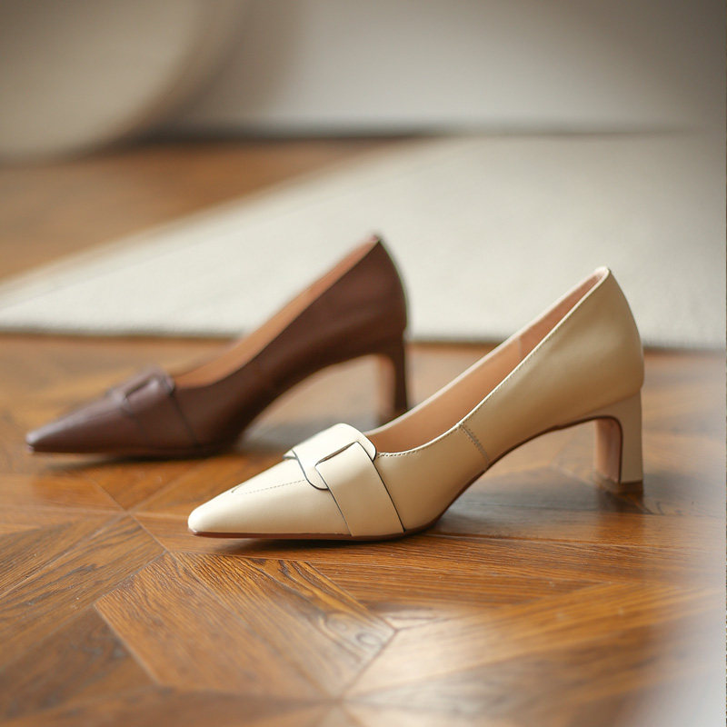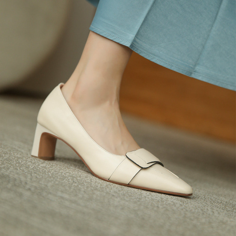 High heel shoe coarse heel 2022 Summer new French style genuine leather pointed temperament retro with soft bottom single shoe children