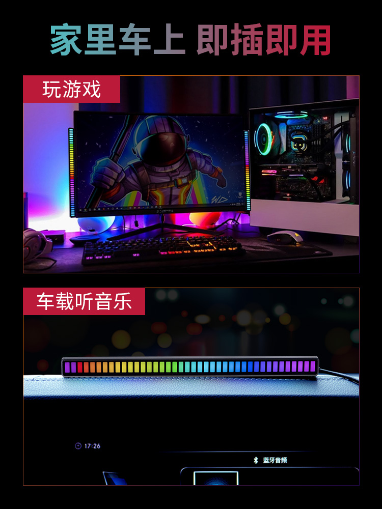Car pickup lamp rgb voice-activated atmosphere lamp wiring-free atmosphere rhythm lamp car audio desktop music stereo
