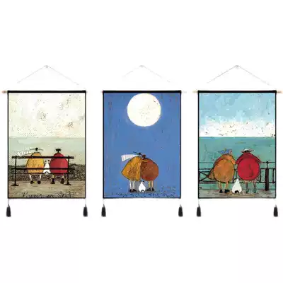 Nordic cartoon oil painting tapestry hanging painting bed head living room entrance fabric simple decoration background cloth personality tassels