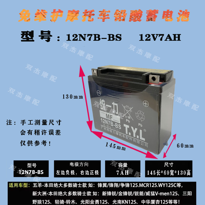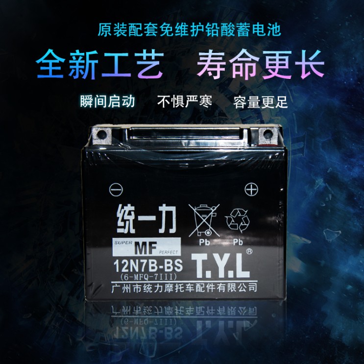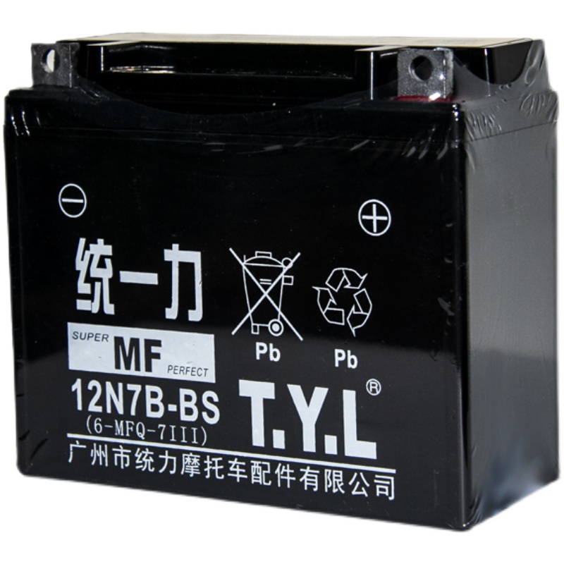 Unified force TYL12N7B storage battery 12V7a locomotive battery new continent light riding frontal wing sharp 125 thin section